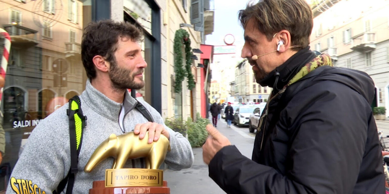 Per De Martino è il terzo Tapiro d’oro ricevuto in carriera, esclusi quelli di coppia (due con l’ex Belén e uno con il figlio Santiago). Il servizio completo domani sera a Striscia la notizia (Canale 5, ore 20.35).