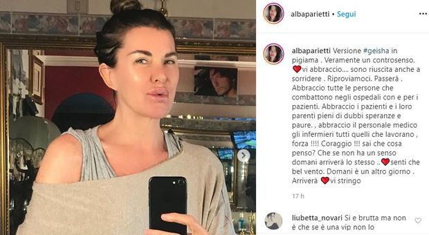 Alba Parietti si fa vedere senza trucco in una foto su Instagram e molti stentano a riconoscerla. Il look casalinga di Alba non è piaciuto a molti follower che hanno criticato la showgirl in versione geisha in pigiama al “naturale”.