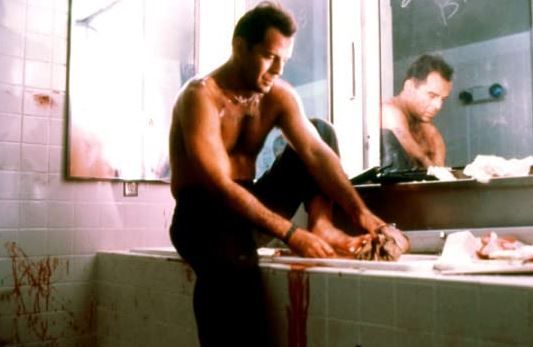 Ricordate la celebre scena nella quale John McClane corre tra i frammenti di vetro a piedi scalzi dopo che Hans Gruber ha fatto sparare ai suoi uomini fuori le partizioni di vetro nella sala computer? Ebbene, per fare quella scena Bruce Willis indossò delle speciali scarpe di gomma progettate per assomigliare ai suoi stessi piedi scalzi. Se fate particolarmente attenzione, in alcune inquadrature è possibile accorgersi del ‘trucco’ e vedere che i suoi piedi appaiono innaturalmente grandi.