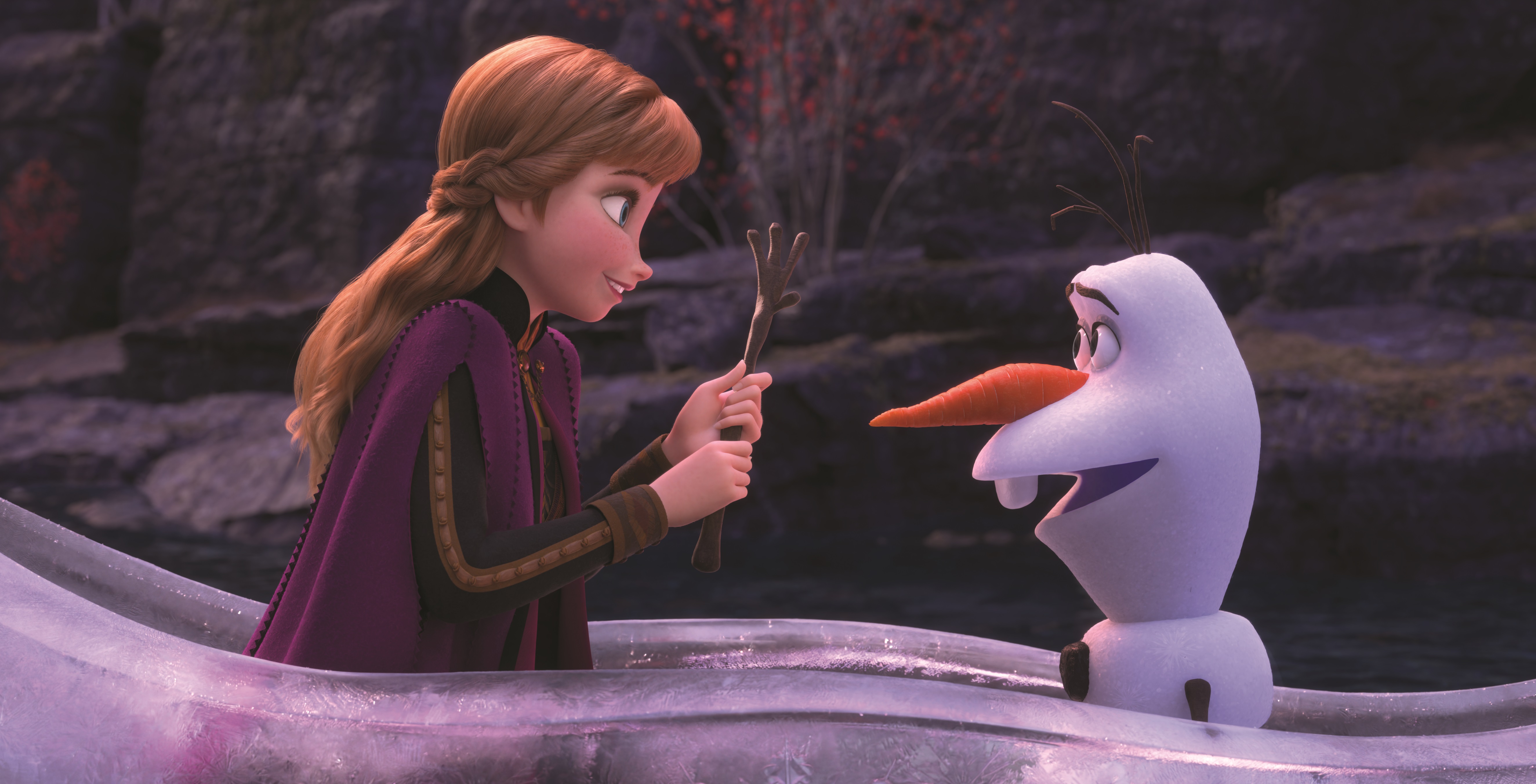 Già leggendo la trama si intuisce che questo secondo capitolo si distacca non poco dal primo. Con una storia molto più adulta e a tratti dark, Il segreto di Arendelle cerca con ogni mezzo di non essere una copia di quanto già visto. Passata la prima mezz’ora con introduzioni e spiegazioni sulla natura e il passato del regno, il film si dipana con una serie di scene separate e dedicate ad ogni personaggio: Elsa va per le sue, Anna si mette alla ricerca della sorella in compagnia di Olaf, mentre Kristoff e Sven cercano di raggiungere il gruppo. Questo schema fa sì che i personaggi abbiano un loro preciso minutaggio, ognuno col suo momento e la rispettiva canzone, trasformando presto la pellicola quasi in un musical teatrale.