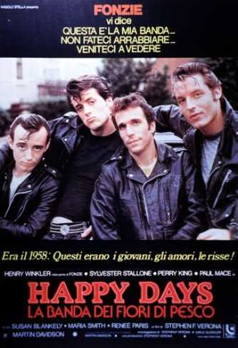 Nello stesso anno, il 1974, in cui la tv americana [e successivamente l’ italiana] mandava in onda la prima serie di Happy days, il cinema proponeva questo film, girato però due anni prima, dal titolo The lords of a Flatbush, conosciuto in Italia come Happy days. La banda dei fiori di pesco.