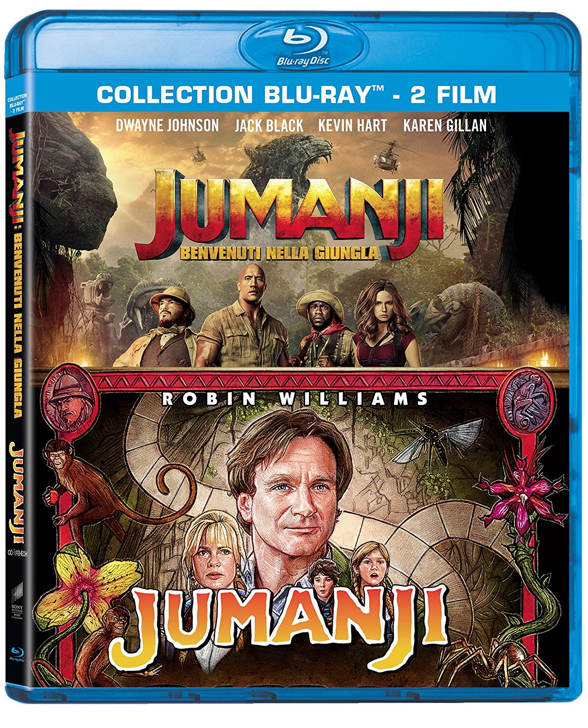 In un unico ed imperdibile cofanetto da collezione ci sono entrambi i film ispirati al libro di Van Allsburg, con l’occasione di rituffarci nel primo Jumanji, uscito nel 1995 in compagnia di un irresistibile Robin Williams e preparaci ad una nuova avventura con Jumanji: Benvenuti nella Giungla, il sequel campione di incassi uscito nel 2017.