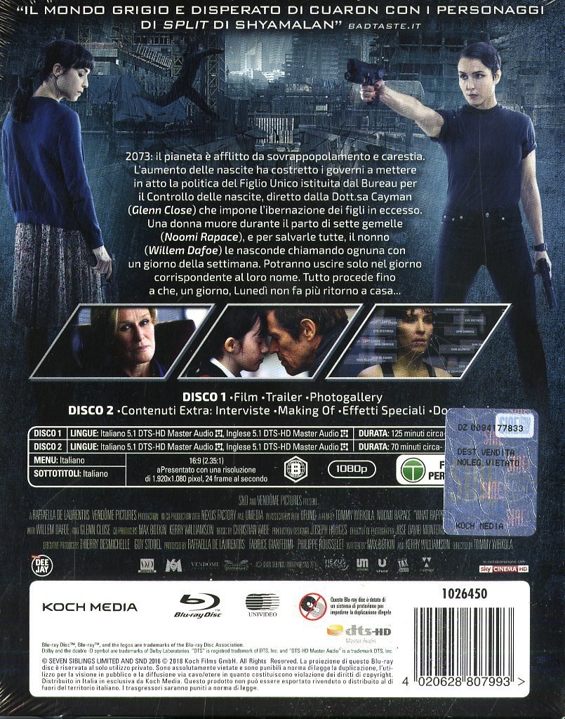 In un futuro tetro, la sovrappopolazione obbliga il governo a misure estreme. Il piano di Nicolette Cayman (Glenn Close) prevede di obbligare le famiglie ad avere un solo figlio: fratelli e sorelle saranno ibernati in attesa di tempi migliori. Ma Terrence Settman (Willem Dafoe) riesce ad aggirare i controlli del Child Allocation Bureau, facendo assumere alle sue sette nipotine gemelle la medesima identità. Ognuna si chiamerà come un giorno della settimana e in quello stesso giorno potrà uscire di casa. Per il mondo le sette sorelle corrispondono a un’unica persona: Karen Settman (Noomi Rapace).