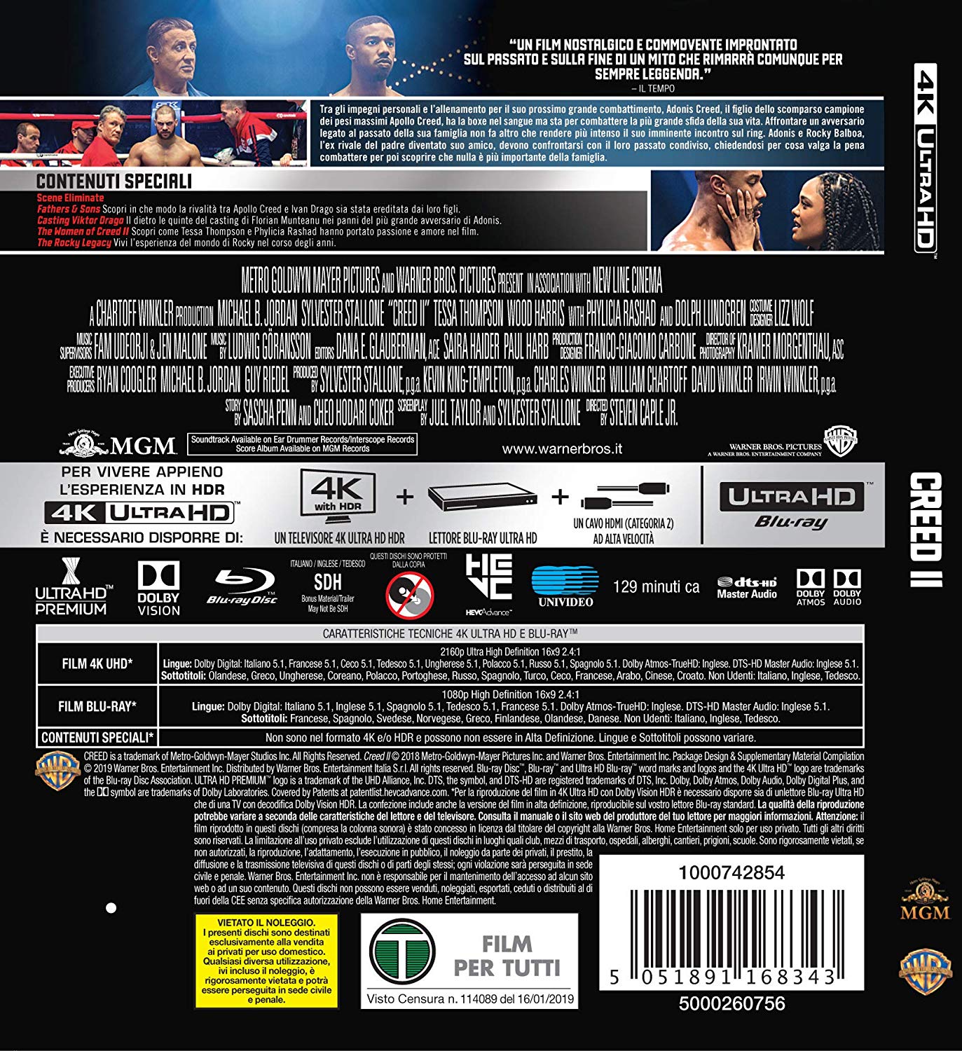 • The Women of Creed II (5 minuti): contenuto speciale dedicato ai personaggi di Bianca (Tessa Thompson) e della mamma di Adonis (Phylicia Rashād).