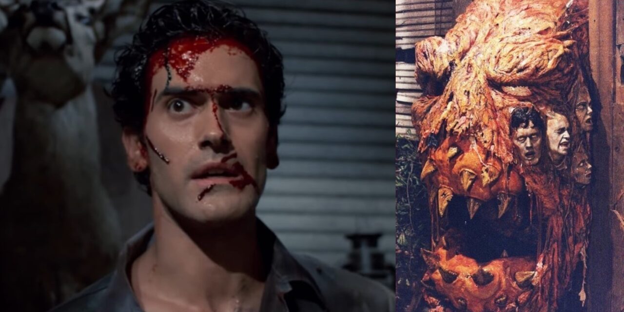 Nel capanno vicino alla casa dove Ash si reca per smembrare la sua ragazza si può notare il guanto di Freddy Krueger, protagonista di una delle più iconiche e note saghe del cinema horror. In A Nightmare on Elm Street di Wes Craven, la protagonista del film interpretata da Heather Langenkamp guarda in TV proprio The Evil Dead mentre nel primo capitolo della trilogia di Raimi si può vedere in un angolo della cantina il poster del film Le Colline Hanno gli Occhi, il debutto alla regia di Wes Craven. La grande testa demoniaca che Ash combatte nel culmine del film, che la troupe ha soprannominato la “testa di mela marcia”, era troppo grande e ingombrante per essere riportata in California, quindi è stata lasciata nella Carolina del Nord e scomparve. La sua ubicazione rimase sconosciuta fino a quando non venne trovata in un’attrazione di Halloween appena fuori dal luogo delle riprese originali di Wadesboro, nella Carolina del Nord.