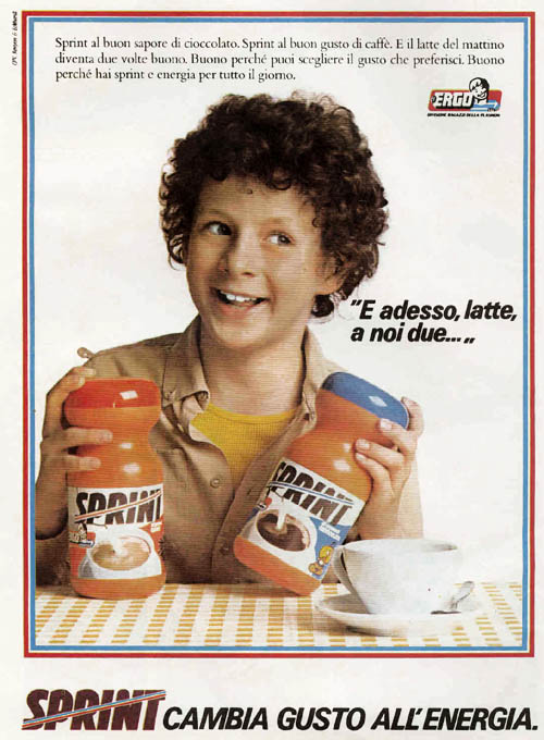 La Plasmon si presentò con queste tre versioni: l’Ergospalma (crema concorrente della Nutella), l’Ergo Sprint al sapore di cacao, l’Ergo Cappuccio che aveva il caratteristico tappo rosso, al gusto di cappuccino (prematuramente scomparso e sostituito con il gusto malto e orzo) e l’Ergo Biscotto. Sul finire degli anni ottanta, lo Sprint scomparve dagli scaffali dei supermercati.