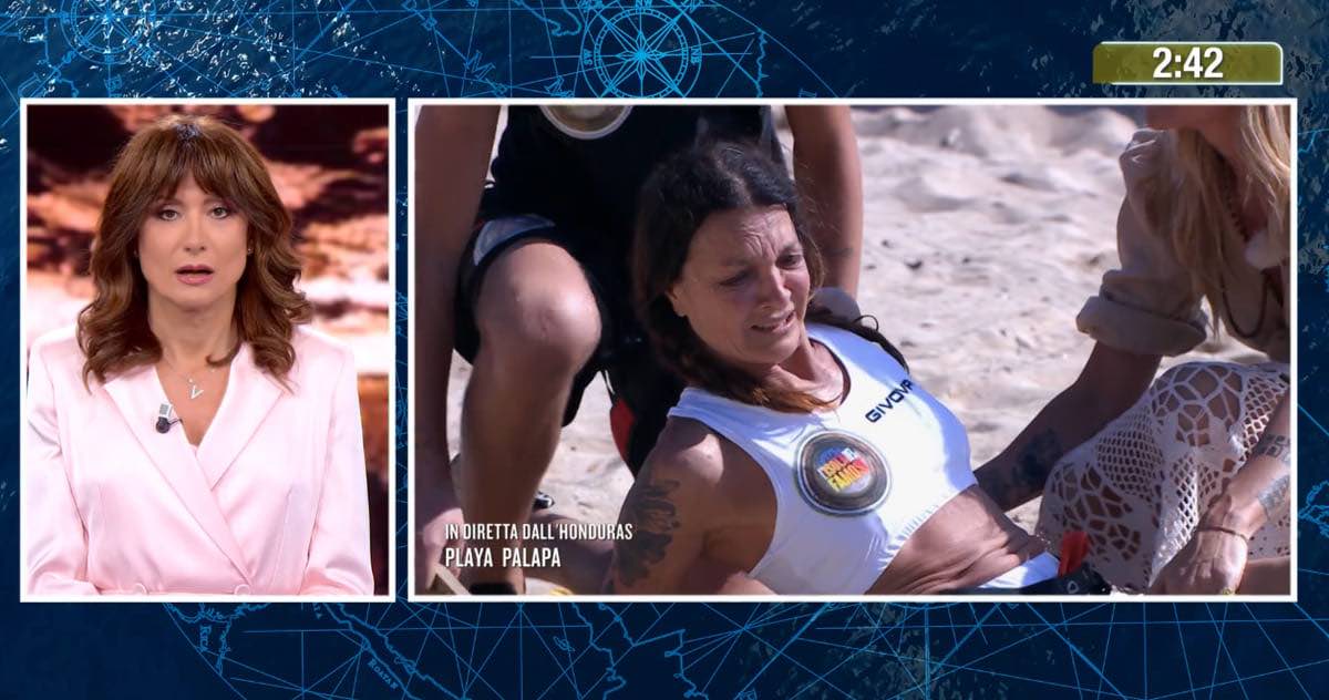 Legati da una corda Pietro Fanelli e Marina Suma dovevano portare la bandierina dal proprio lato di campo, ma la forza e l’impeto del modello fa cadere l’attrice che si fa male e chiede aiuto. La regia stoppa la diretta dall’Honduras tornando in studio dove c’è Vladimir Luxuria che rassicura il pubblico: “Voi non state vedendo ma io sì, tranquilli sono arrivati i medici”. Poco più tardi, Elenoire Casalegno ha dato ulteriori aggiornamenti sullo stato di salute di Marina Suma: “Per ora pare nulla di grave, gli affetti non si devono preoccupare. Al momento Marina sta facendo accertamenti più approfonditi ed è in buonissime mani”.