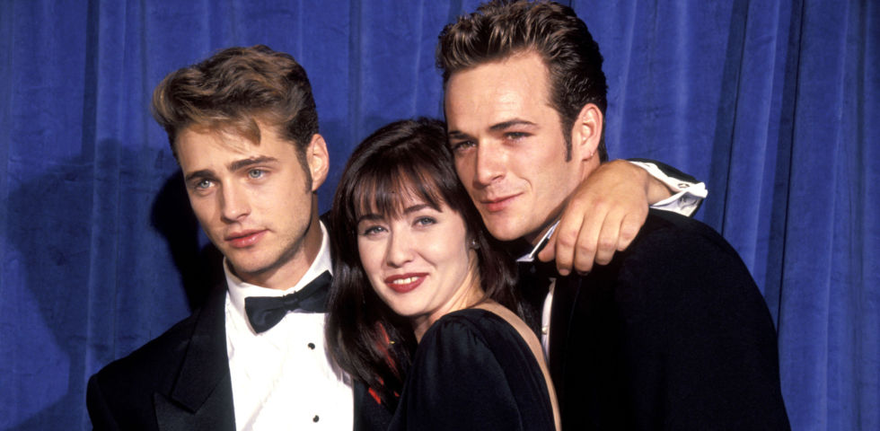 Jason Priestley, Shannen Doherty and Luke Perry at the Pasadena Civic Center in Pasadena, California (Photo by Ron Galella/WireImage)