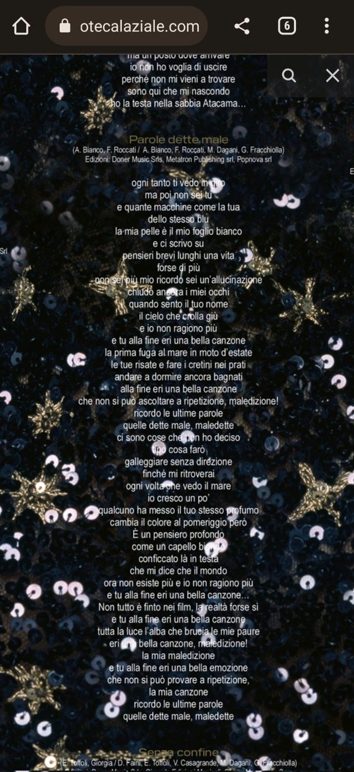 La canzone che Giorgia porterà al Festival di Sanremo, Parole dette male, è stata spoilerata sul web. Secondo quanto riportato dal sito Davidemaggio.it, l’errore sarebbe partito da una pubblicazione fatta da Discoteca Laziale, il negozio di musica specializzato nella vendita online, che, nel giorno dell’apertura dei preordini del nuovo album ‘Blu’ in uscita il 17 febbraio, avrebbe pubblicato su una pagina dedicata all’album anche i vari testi delle canzoni.