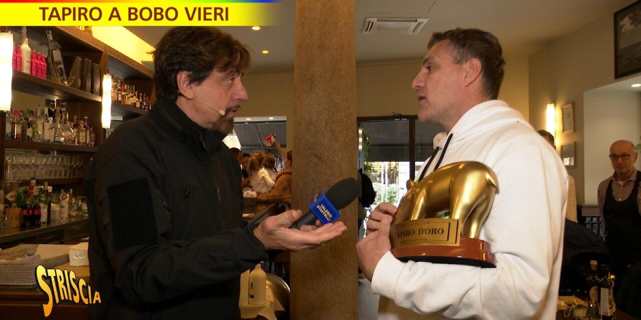 È da tempo che Christian Vieri chiede a Valerio Staffelli di tornare da lui per riprendersi il Tapiro d’oro ricevuto il 23 novembre scorso (vedi servizio) dopo il presunto flop della Bobo Tv su Raiuno, i cui ascolti sarebbero migliorati. E stasera a Striscia la notizia (Canale 5, ore 20.35), l’inviato del tg satirico lo accontenta. Ma il Tapiro lo lascia a Vieri.