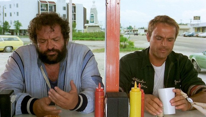 “Sapevate che Bud non vedeva un tubo e quando giravamo non poteva portare gli occhiali? Così faceva mettere i tizi da menare tutti attorno. Uno qua, uno là e poi si girava e diceva: tu dove sei? Ah, a te le ho già date. Questi poveretti tremavano dalla paura. Io poi gli facevo dei gran dispetti: “Bud guarda quello là non l’hai colpito bene, devi rifarla”
