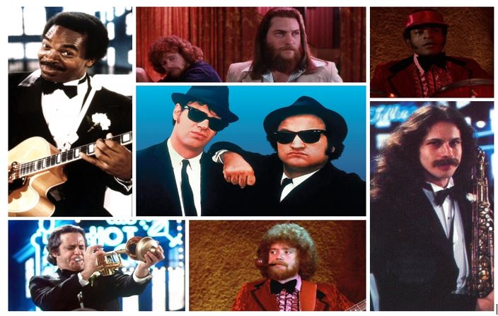 Belushi prese il nome di Jake “Joliet” Blues mentre Aykroyd Elwood Blues; insieme formarono un gruppo con numerosi musicisti, tra cui, e qui citiamo coloro che apparvero anche nel film, il sassofonista Lou Marini, il trombettista-sassofonista Tom Malone, il trombettista Alan Rubin, i chitarristi Steve Cropper e Matt Murphy, il bassista Donald Dunn, il tastierista Murphy Dunne e il batterista Willie Hall.