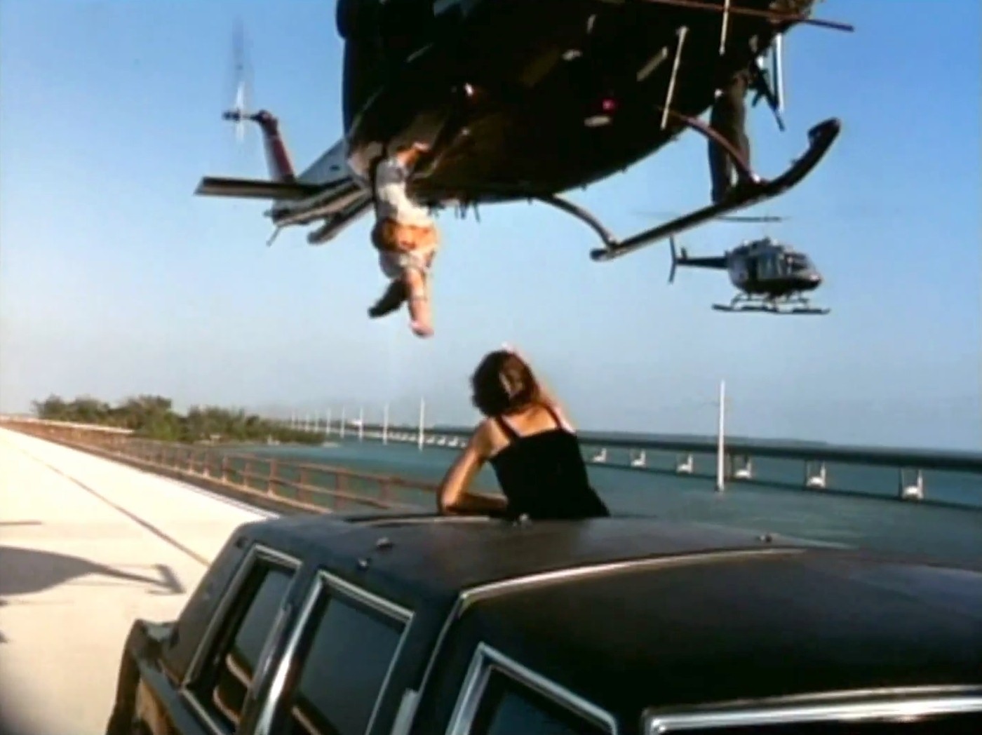 Ecco quanto raccontato dalla Curtis: “Cameron mi propose di girare la scena dell’elicottero, al ché io gli faccio: “E tu cosa farai mentre io sto appesa in aria, Jim?” “Starò appeso alla portiera dell’elicottero, filmandoti con una telecamera in mano”. Touché. Se Cameron era disposto a farlo, anche lei avrebbe rischiato. La Curtis filmò quella scena esattamente il giorno del suo 35° compleanno, il 22 novembre 1993.