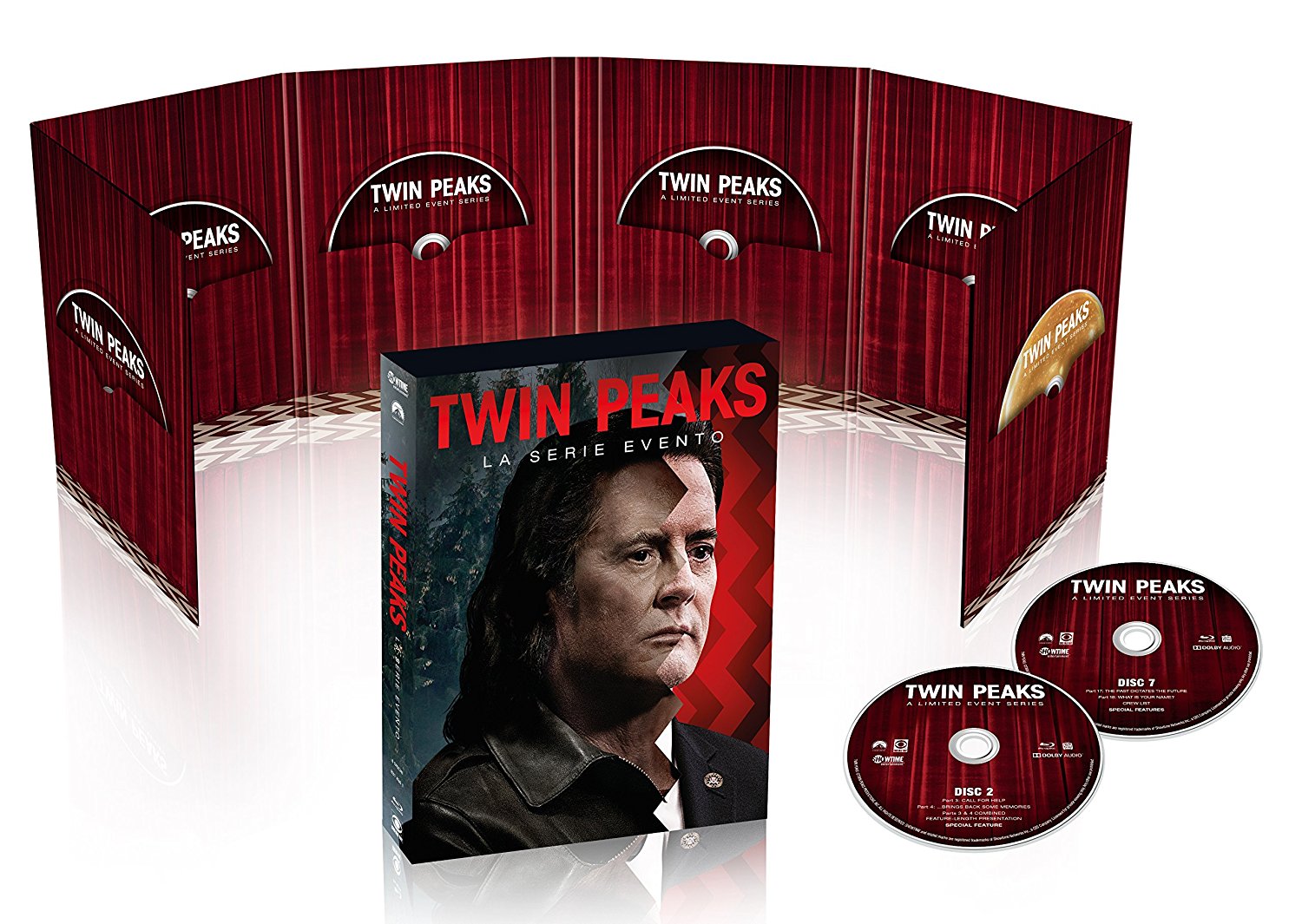 Il cofanetto Blu-ray si presenta con 8 dischi totali, i primi sette dedicati alle puntate mentre l’ultimo esclusivamente di contenuti speciali. I contenuti extra sveleranno cosa si cela veramente dietro il “sipario rosso” e come è stato realizzato questo incredibile evento televisivo diventato subito un cult d’autore.