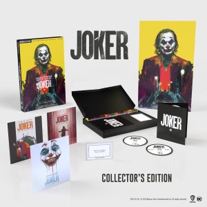 “JOKER”, il film diretto, co-scritto e prodotto da Todd Phillips, vincitore di 2 Oscar, 2 Golden Globe e del Leone D’Oro per il Miglior Film alla 76° Mostra Internazionale d’Arte Cinematografica di Venezia, dal 9 Dicembre sarà disponibile anche  la “Joker Collector’s Edition, un cofanetto esclusivo in edizione limitata, che comprenderà il film nei formati 4K Ultra HD e Blu-ray, un Poster, tre Art Card e la replica del biglietto “Forgive my Laughter: I have a Condition”.