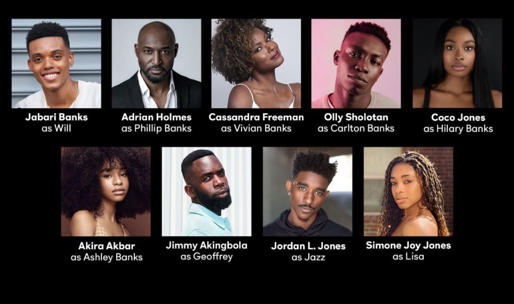 In sostituzione di Will Smith nei panni di Will ci sarà Jabari Banks, Adrian Holmes sarà il nuovo Phillip Banks (“At That Age,” “V Wars”), Cassandra Freeman la zia Vivian Banks (“The Enemy Within,” “Atlanta”), Olly Sholotan sarà Carlton Banks (“Run Hide Fight,” “Evolution of Nate Gibson”), Coco Jones Hilary Banks (“Let it Shine,” “Vampires vs. The Bronx”), Akira Akbar come Ashley Banks (“We Can Be Heroes”, “Captain Marvel”), Jimmy Akingbola come Geoffrey (“Most Dangerous Game”, “In The Long Run”), Jordan L. Jones come Jazz (“Rel”, “Snowfall”) e Simone Joy Jones come Lisa (“The Chair”, “What If”).
